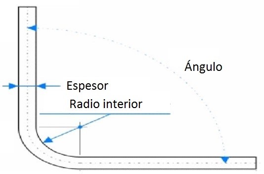 - y el ángulo, a la dimensión en grados entre las dos partes rectas antes y después de la curvatura.